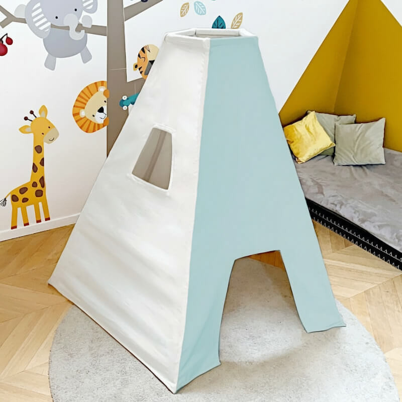 Notre gamme tipi enfant est entièrement fabriquée en France. Pour notre plus grande fierté (car seulement 10 % des jeux et jouets achetés en France sont fabriqués en France). La conception design est faite en Bretagne et en Normandie. La fabrication des armatures en bois massif et la confection des toiles sont entièrement réalisées dans les Pays de la Loire.